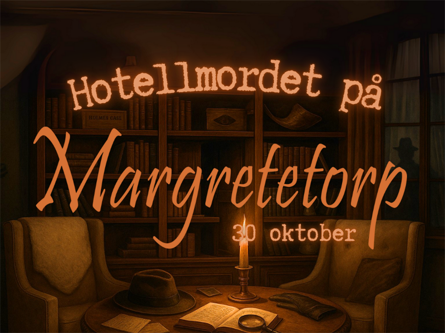 Torsdag kväll kl. 18.00 - ca 19.30 kan du hjälpa till att lösa Hotellmordet på Margretetorp – På hotellet skedde under gårdagen ett mord och polisen är i full gång med sin utredning för att hitta mördaren. Ni får ta del av utredningen och försöka lista ut vem mördaren är. En övning i samarbete där er slutledningsförmåga och känsla för detaljer sätts på prov.